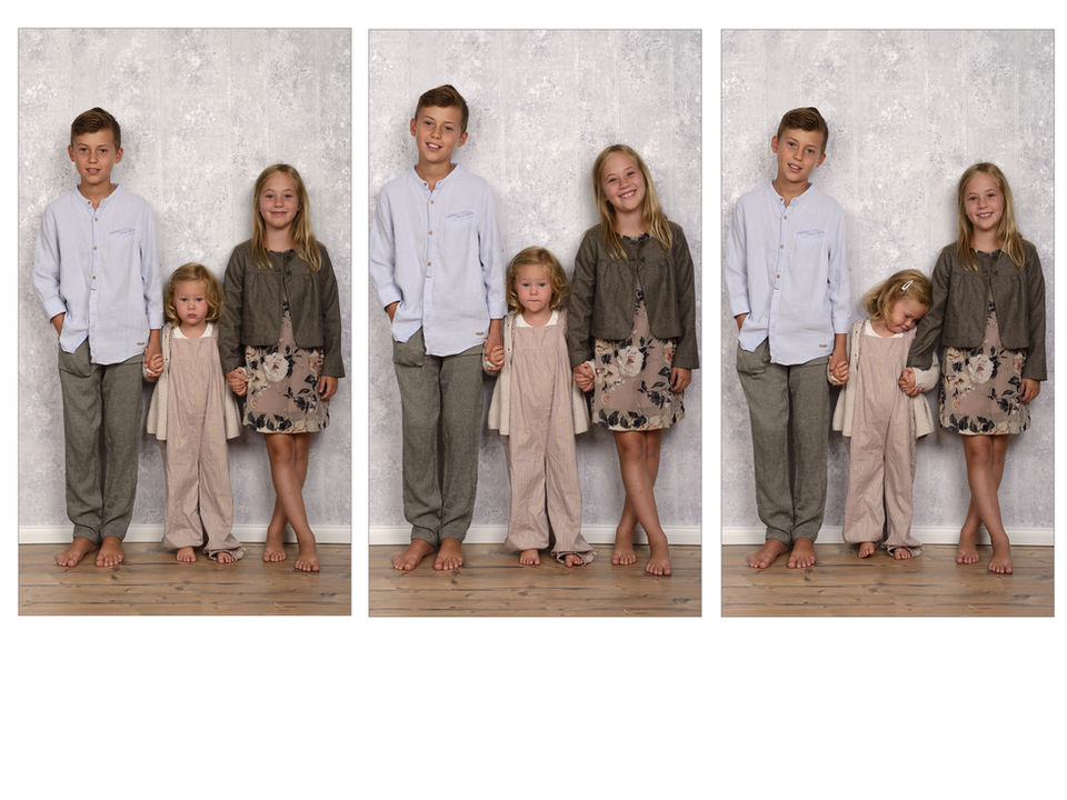Entspannte Atmosphäre. Professionelle Führung. Ich zeige euch Posen. Wir probieren verschiedene Kombinationen. Alle zusammen. Eltern allein. Kinder solo. Großeltern mit Enkeln.